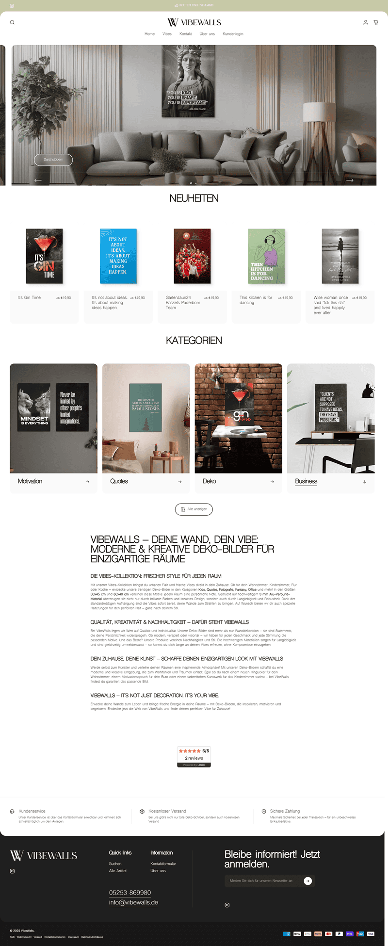 Mit dem Launch von Vibewalls.de wurde ein Onlineshop geschaffen, der durch ein modernes Design, benutzerfreundliche Funktionen und individuelle Anpassungen überzeugt.